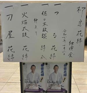 柳家花緑独演会の演目は次のとおりです。 一、つる 柳家花緑 一、佐々木政談 柳家緑太 (仲入り) 一、火焔太鼓 柳家花緑 一、刀屋 柳家花緑 |